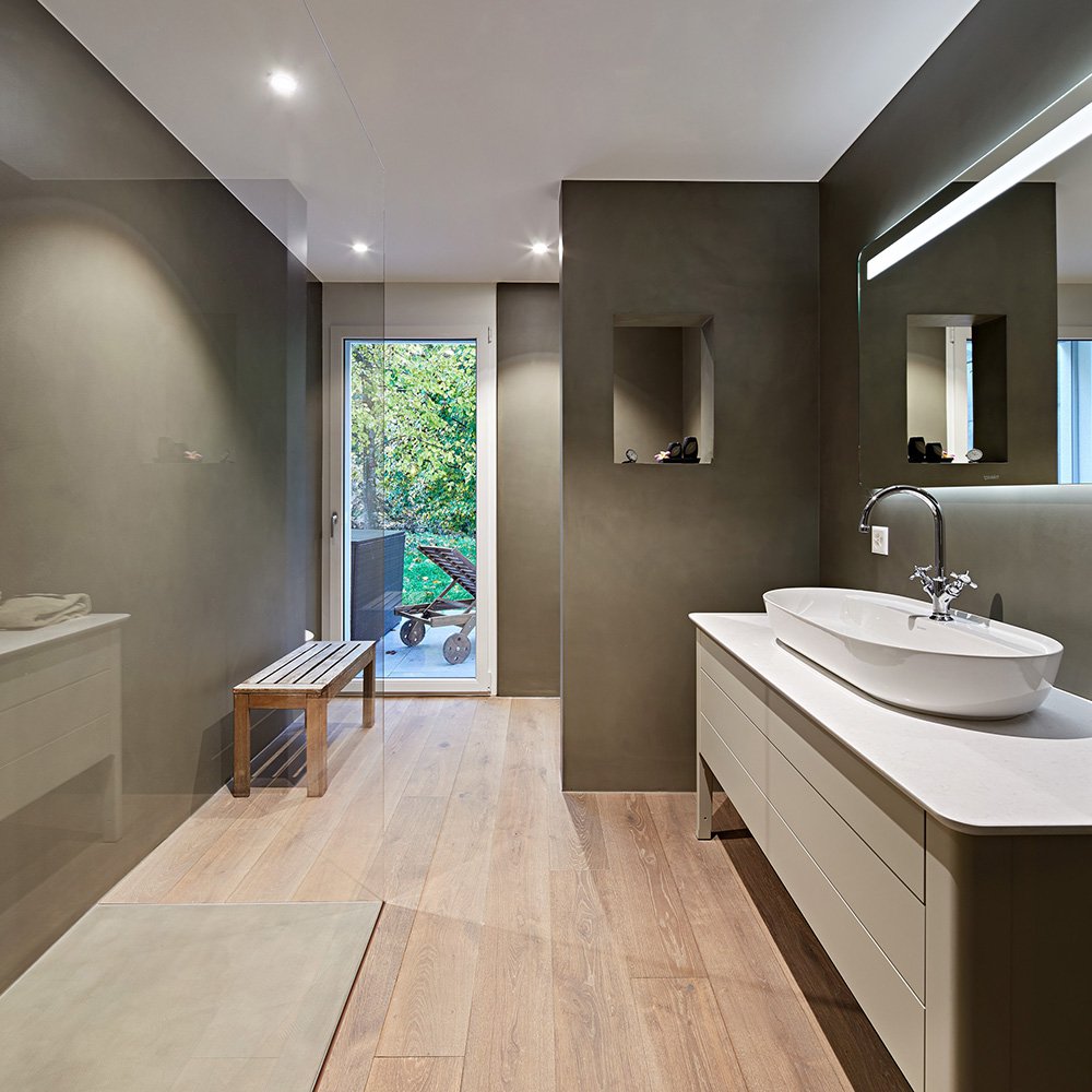 Lassen Sie sich von der Natur inspirieren. Die Zeit, in der man sich an sture Formen von Wand- und Bodenplatten halten musste, ist endgültig vorbei: Naturofloorist ein mineralischer Belag, der auf den natürlichen Rohstoffen Quarzsand und Weisszement basiert und jedem Wand- und Bodenbelag seine eigene Struktur verleiht. Das Schweizer Qualitätsprodukt ist einfach zu pflegen und strapazierfähig. Es wird durch feinste Handarbeit aufgetragen und ermöglicht eine individuelle, fugenlose Raumgestaltung.