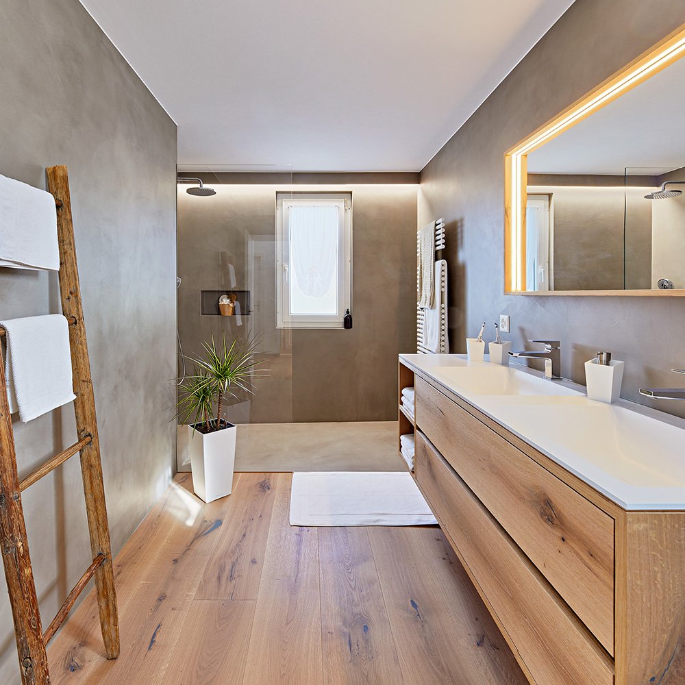 Naturofloor bringt die Natur direkt zu Ihnen nach Hause. Die fugenlosen Beläge eignen sich für Boden und Wände in Küchen, in Duschen, Badezimmern und im Wohnbereich.